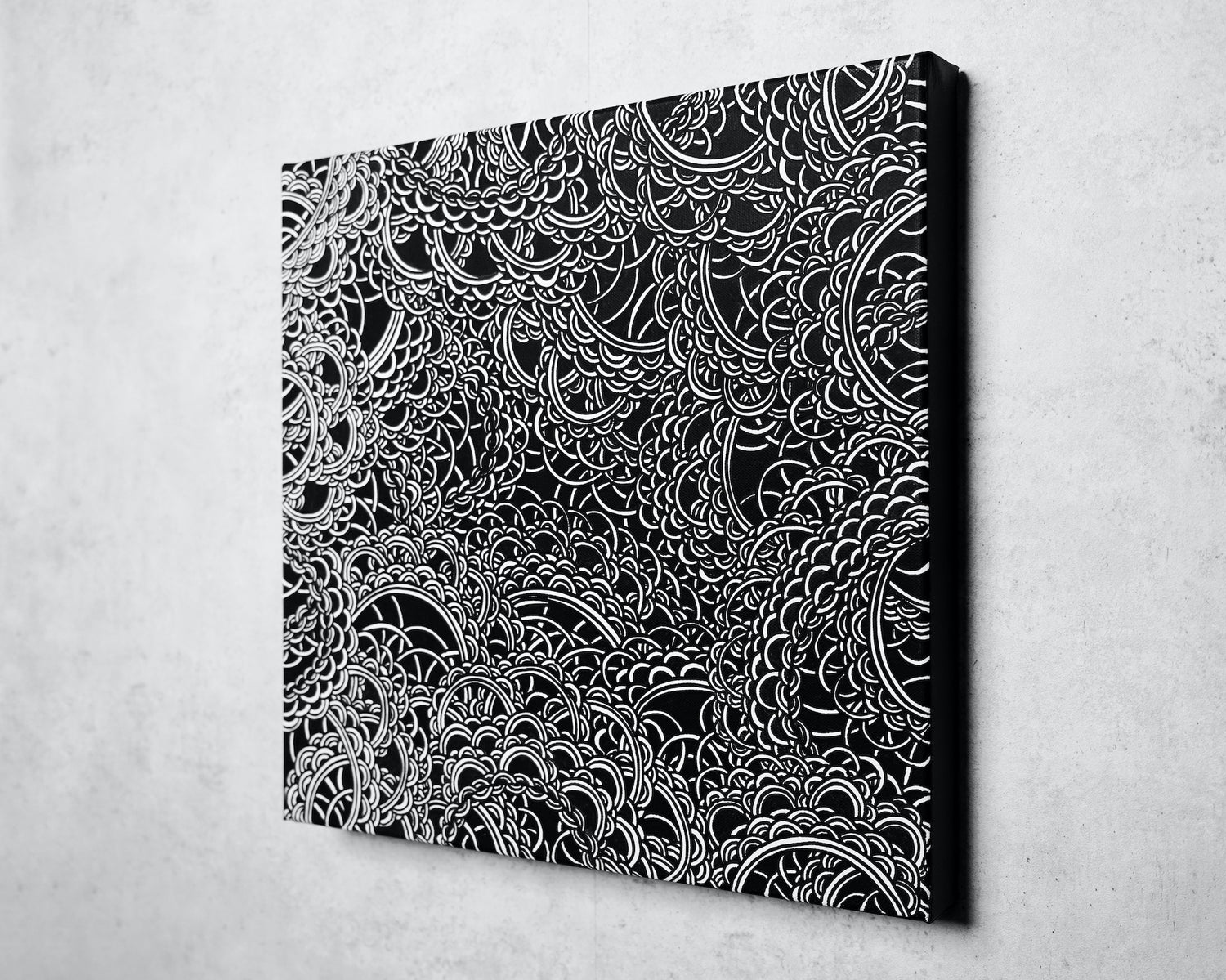 In these drawings, semicircular curves of various sizes are drawn over and over again. It is like the proliferation of cells or the copying and pasting of DNA. Even though the lines are of the same shape, the deviations (misalignments) that occur due to hand-drawing affect the shape of the lines, leading to a different overall image for each work. This process of creation itself mimics the life activity of living things. These works were born out of a simple wonder and longing for all living things.