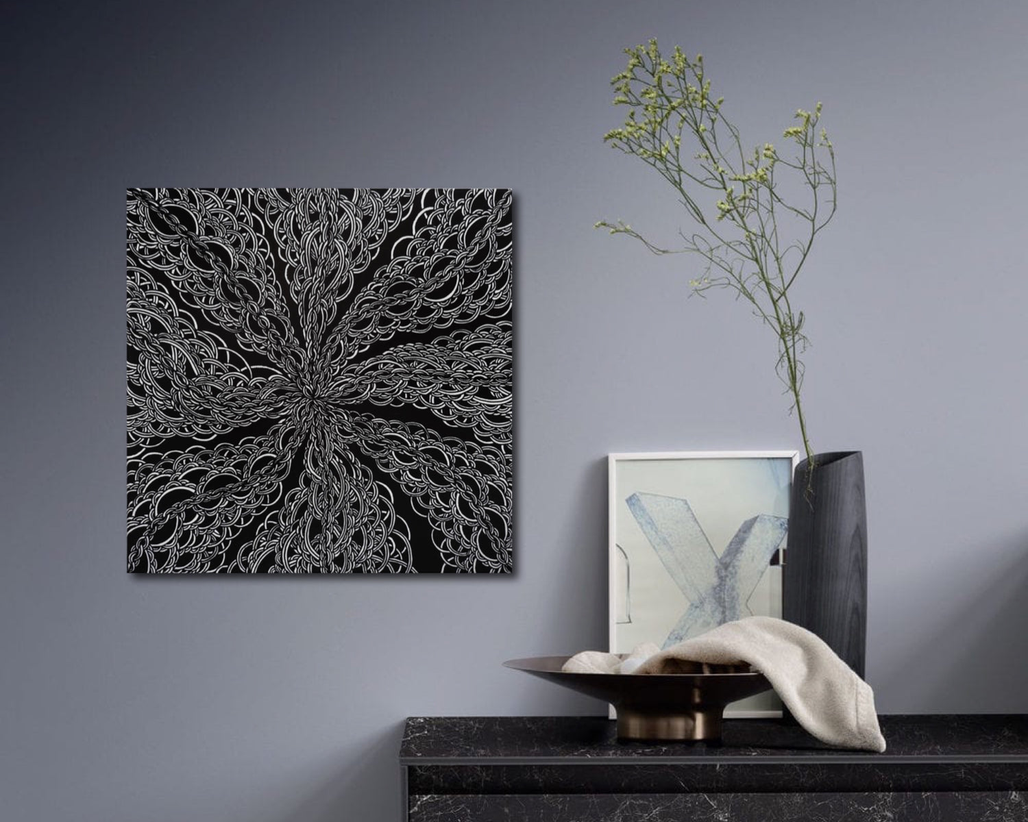 In these drawings, semicircular curves of various sizes are drawn over and over again. It is like the proliferation of cells or the copying and pasting of DNA. Even though the lines are of the same shape, the deviations (misalignments) that occur due to hand-drawing affect the shape of the lines, leading to a different overall image for each work. This process of creation itself mimics the life activity of living things. These works were born out of a simple wonder and longing for all living things.