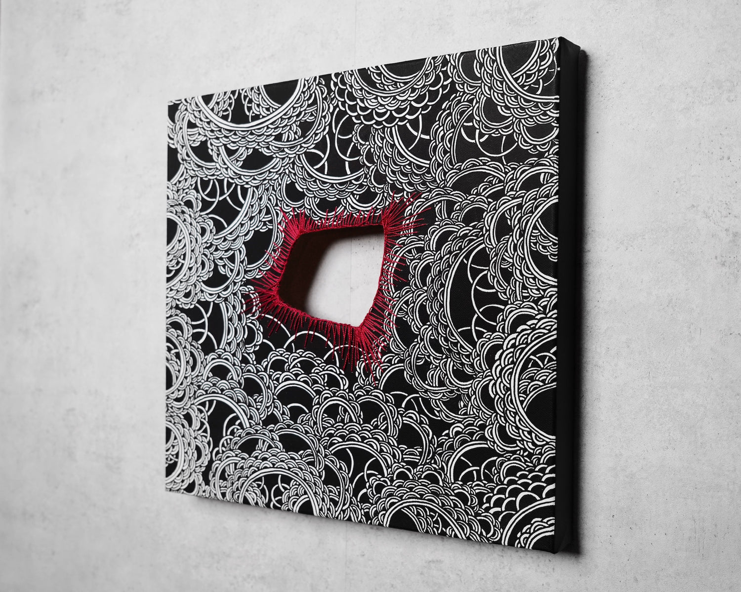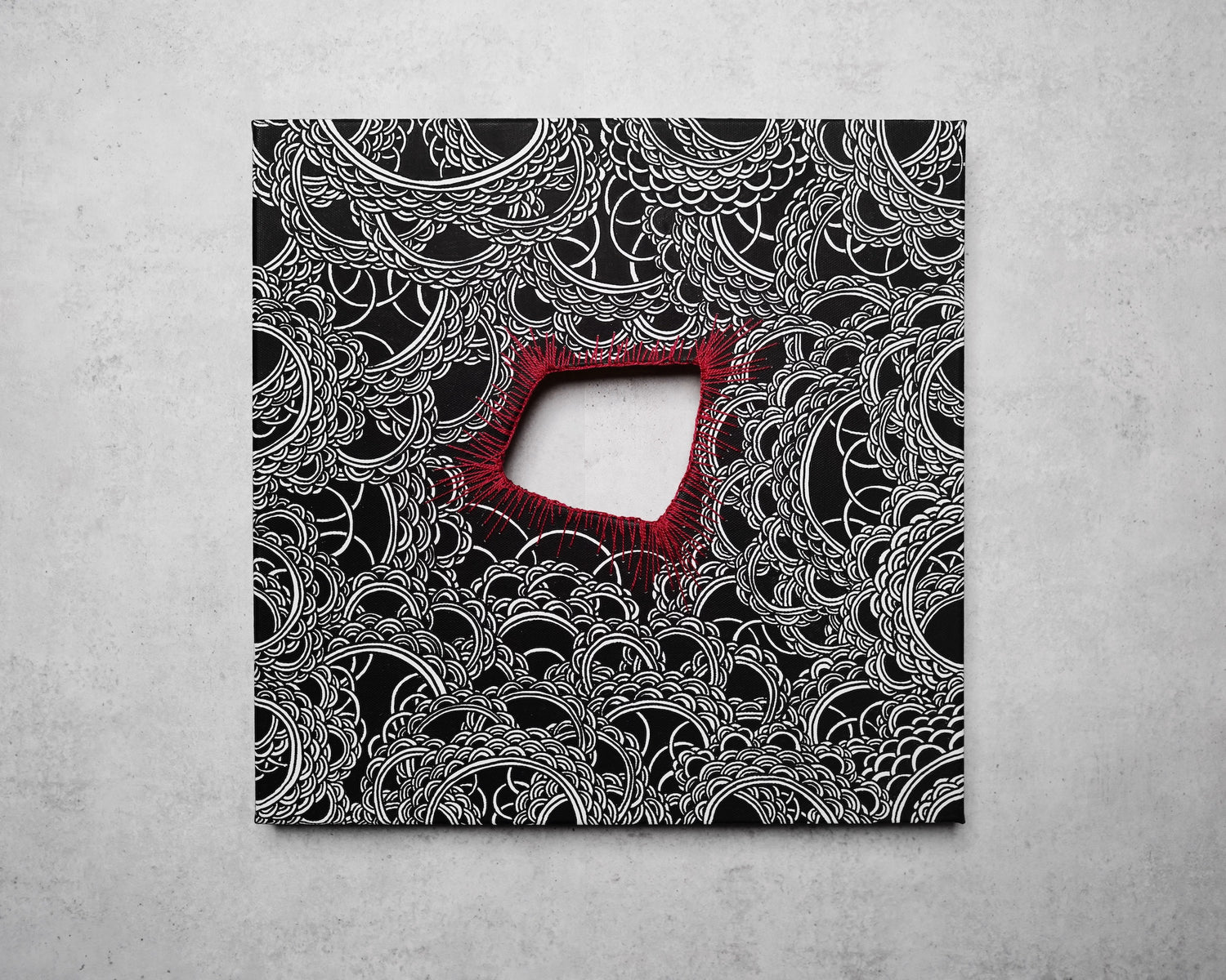 In these drawings, semicircular curves of various sizes are drawn over and over again. It is like the proliferation of cells or the copying and pasting of DNA. Even though the lines are of the same shape, the deviations (misalignments) that occur due to hand-drawing affect the shape of the lines, leading to a different overall image for each work. This process of creation itself mimics the life activity of living things. These works were born out of a simple wonder and longing for all living things.