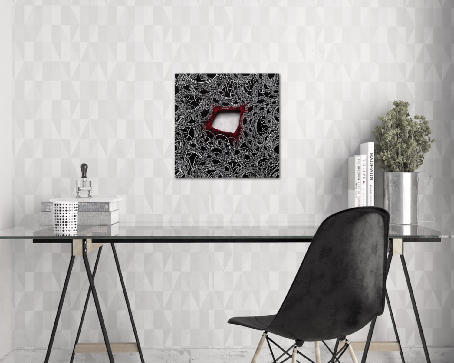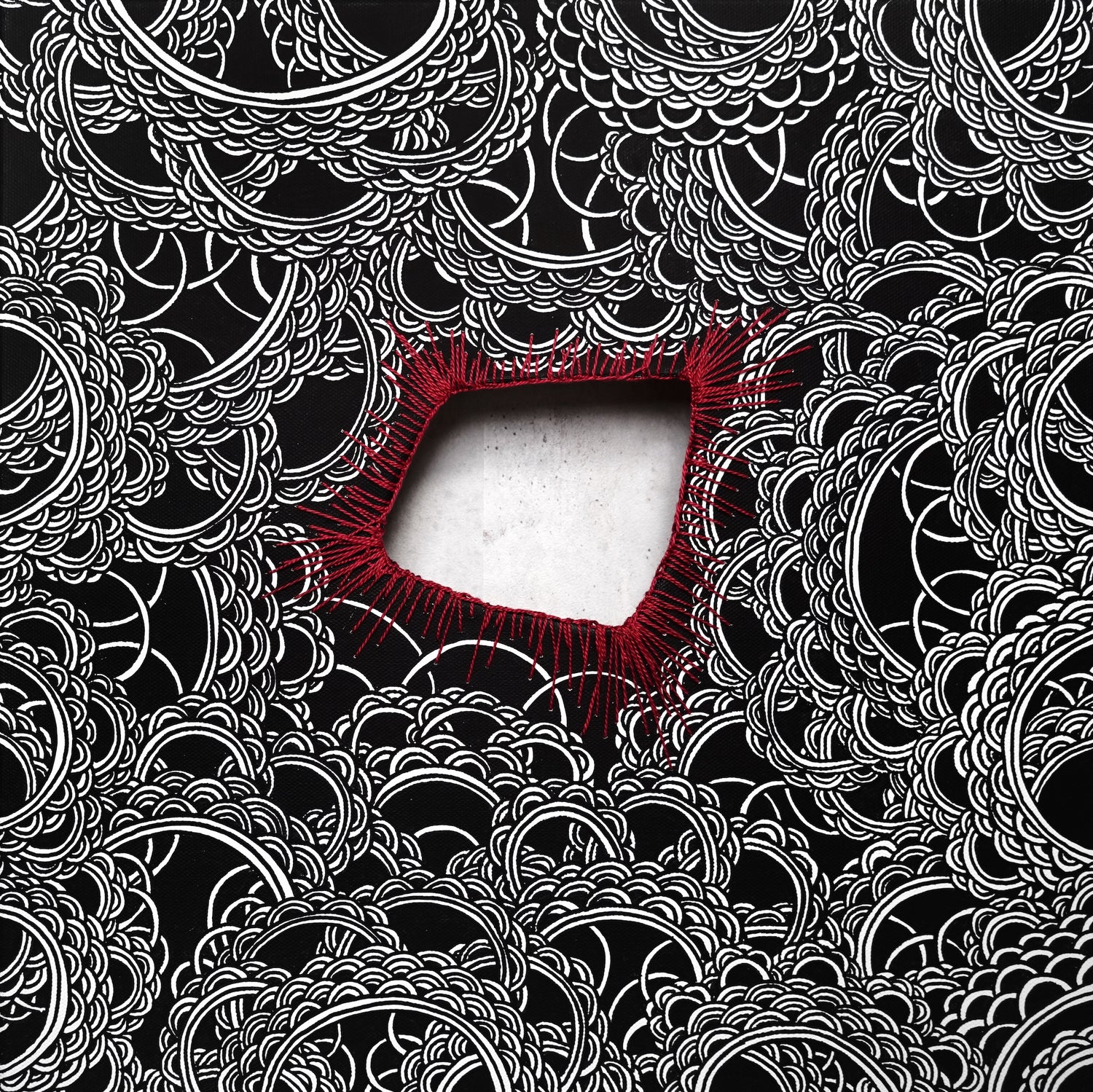 このドローイング作品では、大小さまざまな半円状の曲線が何度も繰り返し描き重ねられています。その様子は細胞の増殖やDNAのコピー&ペーストのようです。さらに、手描きゆえに生じる偏差(ずれ)が線のかたちに影響を与えることによって、同じ形の線でも作品ごとに違った全体像へと導かれてゆきます。この制作過程それ自体が、生物の生命活動を模倣しているのです。生きとし生けるものに対するシンプルな驚きと憧れに突き動かされて、この作品が誕生しました。