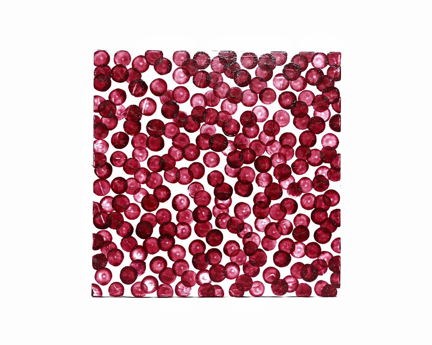 The mysterious dots that dance on the canvas are reminiscent of proliferating cells, buzzing particles, or the stars and large-scale structures of the universe. If you look closely, you can see a pattern of veins inside, like blood vessels or plants, which remind you of the activity of life. While the dot patterns are abstract and conceptual, the work is filled with a dancing vividness that has a strange attraction that makes us think about the mystery and miracle of life.