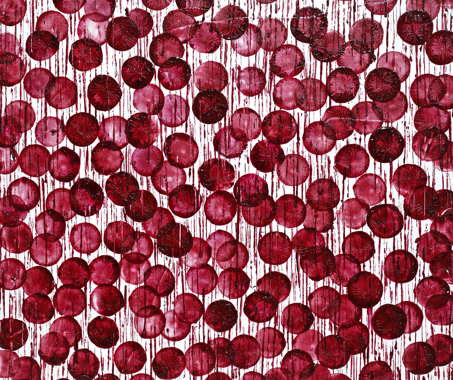 The mysterious dots that dance on the canvas are reminiscent of proliferating cells, buzzing particles, or the stars and large-scale structures of the universe. If you look closely, you can see a pattern of veins inside, like blood vessels or plants, which remind you of the activity of life. While the dot patterns are abstract and conceptual, the work is filled with a dancing vividness that has a strange attraction that makes us think about the mystery and miracle of life.